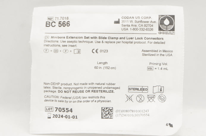 Codan BC 566 71.7018 Mini-Bore Extension Set 1.4ml x 60inch