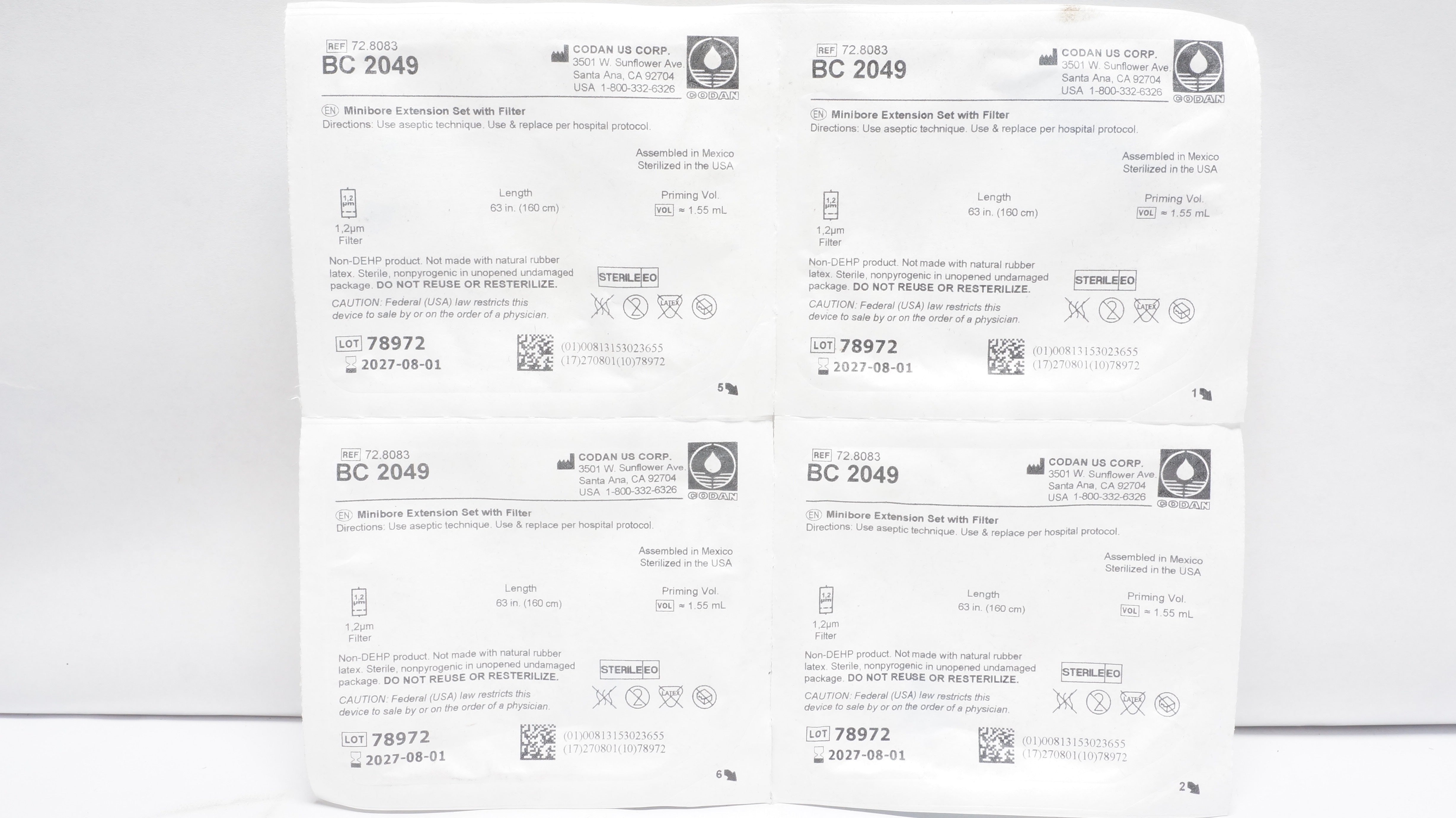 - Codan BC2049 Minibore Extension Set with Filter 1.2µm, 62 inch x 1.55mL-Lot of 4