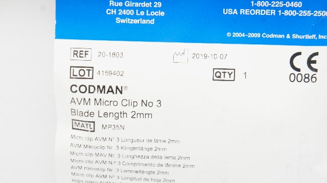 - Codman 20-1803 AVM Micro Clip No 3 Blade Length 2mm