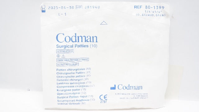 - Codman 80-1399 Surgical Patties 1/4inch x 1/4inch (x) - Pack of 10
