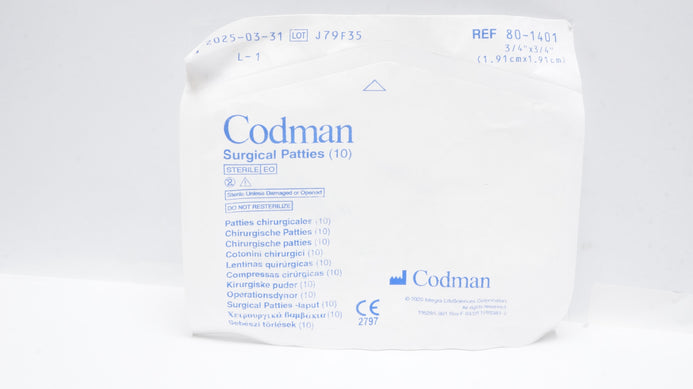 Codman 80-1401 Surgical Patties 0.75 x 0.75 inch - Pack of 10