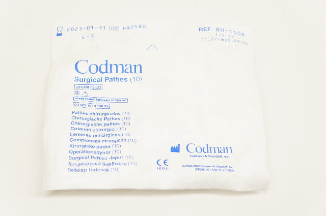 Codman 80-1406 Surgical Patties 1/2inch x 2inch - Pack of 10