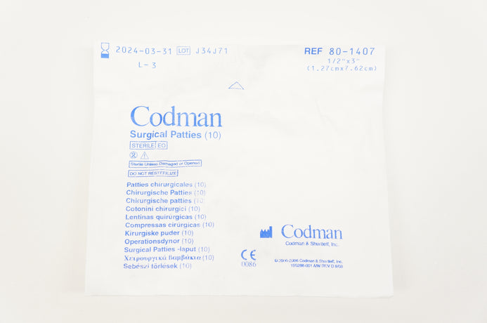 Codman 80-1407 Surgical Patties 1/2inch x 3inch