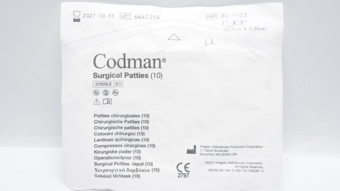 - Codman 80-1407 Surgical Patties 1/2inch x 3inch - Pack of 10