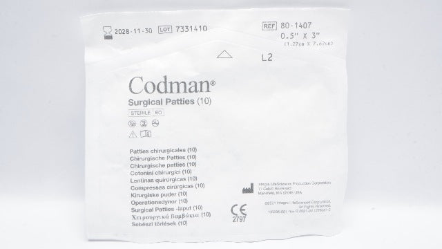 Codman 80-1407 Surgical Patties 1/2inch x 3inch - Pack of 10