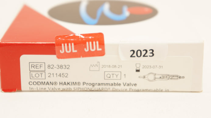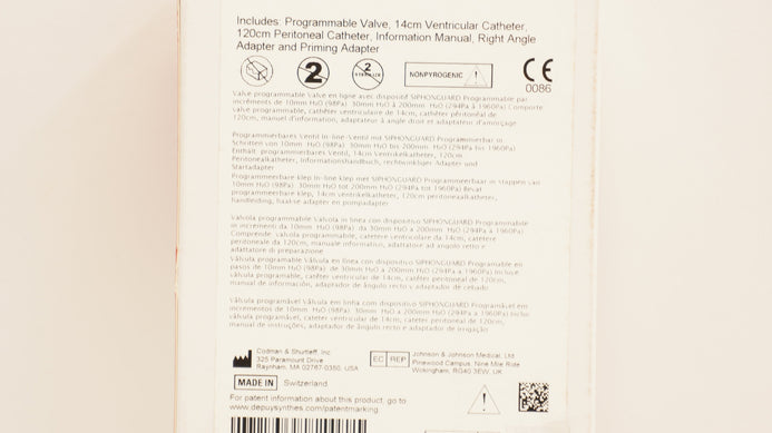 Codman 82-3832 Hakim Programmable Valve In-Line Valve With Siphonguard Device Programmable in Steps of 1mm H2O (98Pa): 30mm H2O to 200mm H2O (294Pa-196Pa)