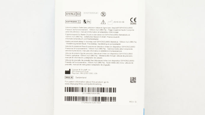 Codman 82-5464 Hakim Precision Fixed Pressure Valve In-Line w/SiphonGuard, 100mm Medium High (x)