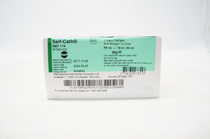 Coloplast 114 Urinary Cath. Soft Straight Tip Male 14F-16in/40cm - Box of 30