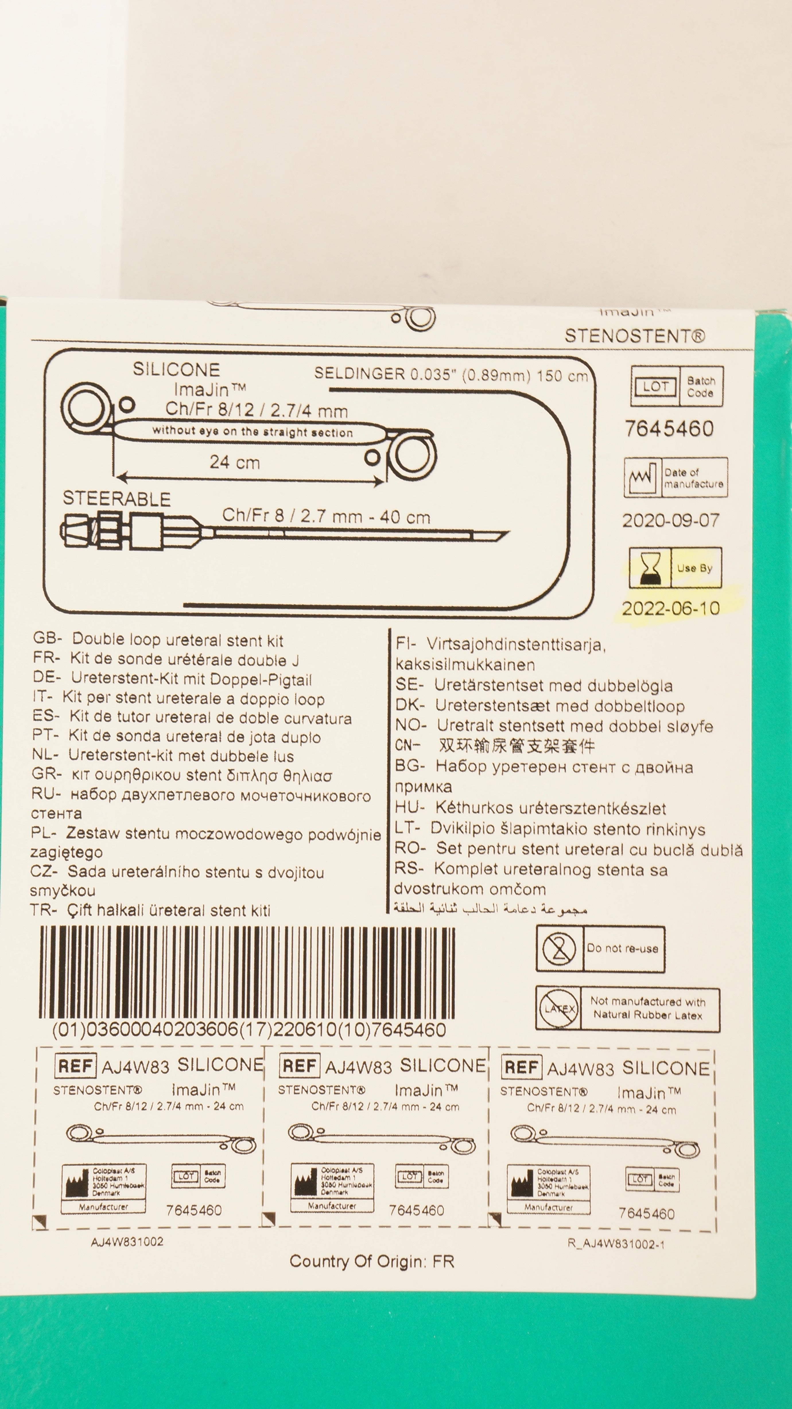 - Coloplast AJ4W83 Stenostent Silicone Double Loop Ureteral Stnt Kit 8Fr x 24cm(x)