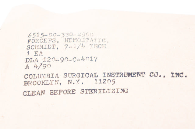 Columbia Forceps Hemostatic Schnidt, 7-1/4inch, 6515-00-338-2900