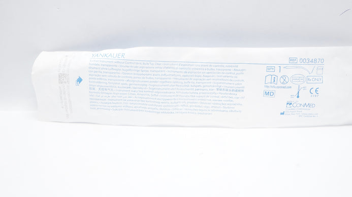 - ConMed 0034870 Yankauer Suction Instrument No Control Vent, Bulb Tip Clear