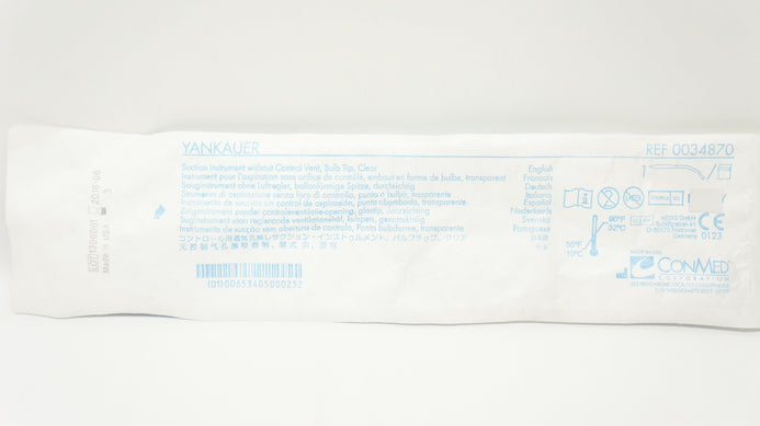 - ConMed 0034870 Yankauer, Suction Instrument, No Control Vent, Bulb Tip, Clear(x)