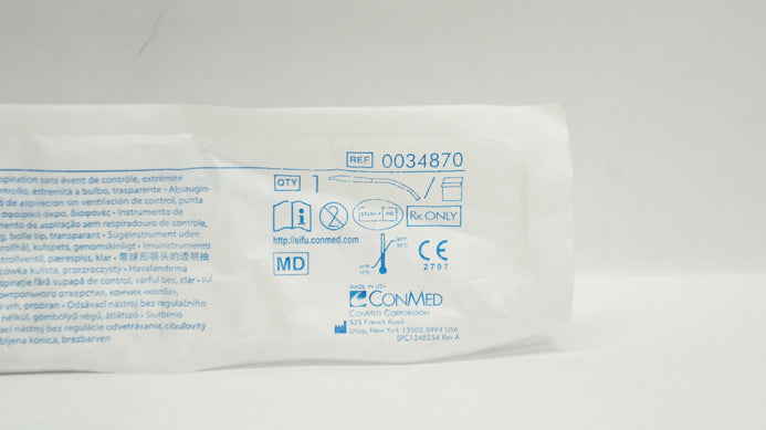 Conmed 0034870 Yankauer Suction Instrument without ControlVent Bulb Tip Clear(x)