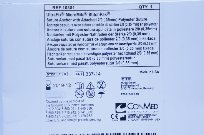 ConMed 10301 UltraFix MicroMite StitchPak Suture Anchor with Attached 2/0 Polyester Suture 1.5mm