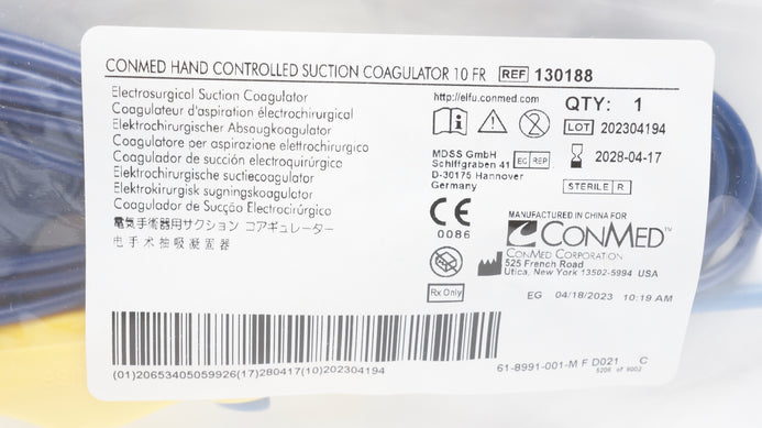 - Conmed 130188 Hand Controlled Suction Coagulator 10FR