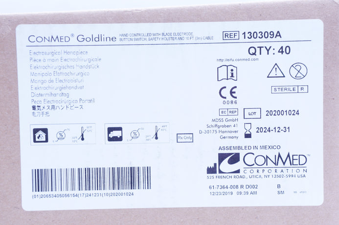 - ConMed 130309A Goldline Electrosurgical Handpiece - Box of 40