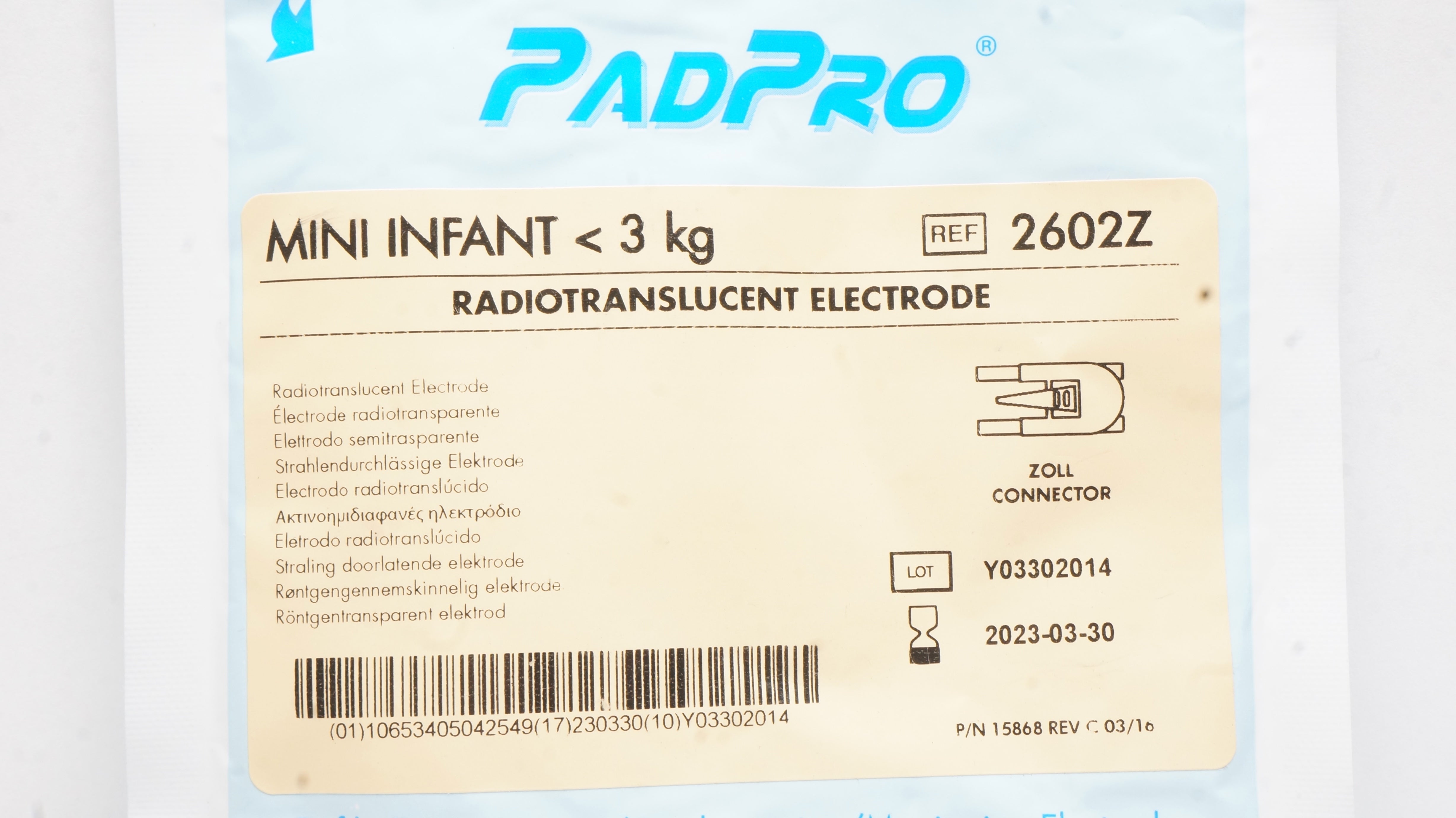 ConMed 2602Z PadPro Mini Infant < 3kg Radiotranslucent Electrode