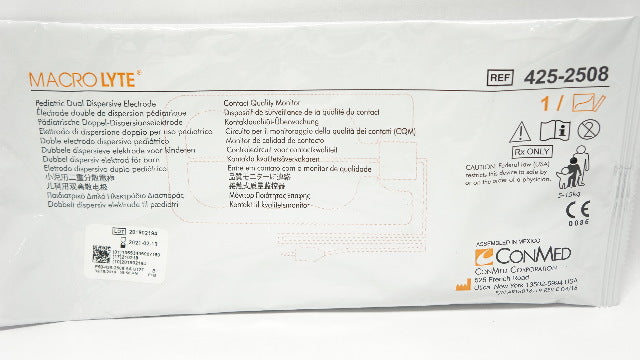 ConMed 425-2508 MACROLYTE Pediatric Dual Dispersive Electrode 5-15kg (x)