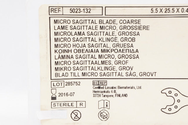- ConMed 5023-132 Micro Sagittal Blade, Coarse 5.5 x 25.5 x 0.4mm (x)