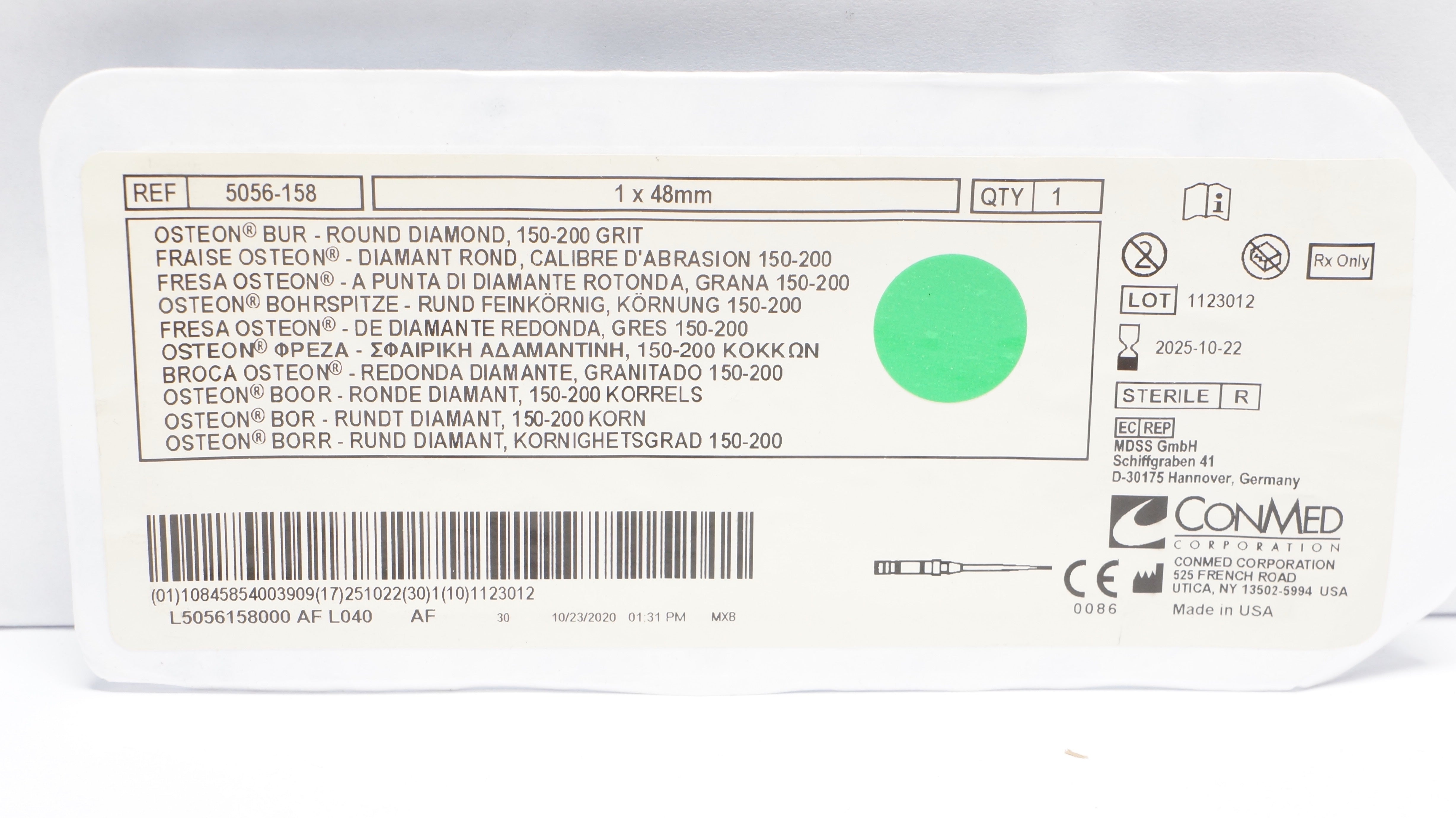 - ConMed 5056-158 Osteon Bur-Round Diamond, 150-200 Grit,Green 1 x 48mm