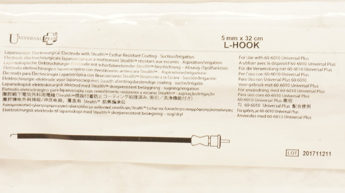 ConMed 60-5274-132 Universal Plus Laparoscopic Electrosurgical Electrode with Stealth Eschar-Resistant Coating-Suction/Irrigation L-Hook 5mm x 32cm