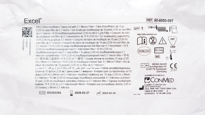 - Conmed 60-6050-097 Excel 10 Ft. Insufflation Tubing Set w/0.1 Micron Filter