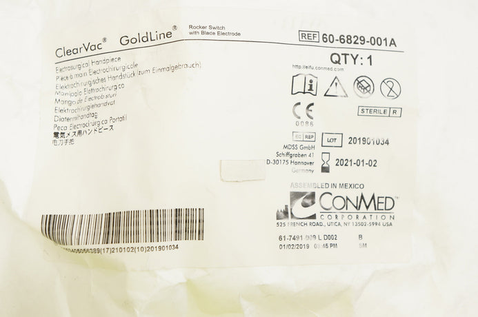 ConMed 60-6829-001A ClearVac GoldLine Electosurgical Handpiece