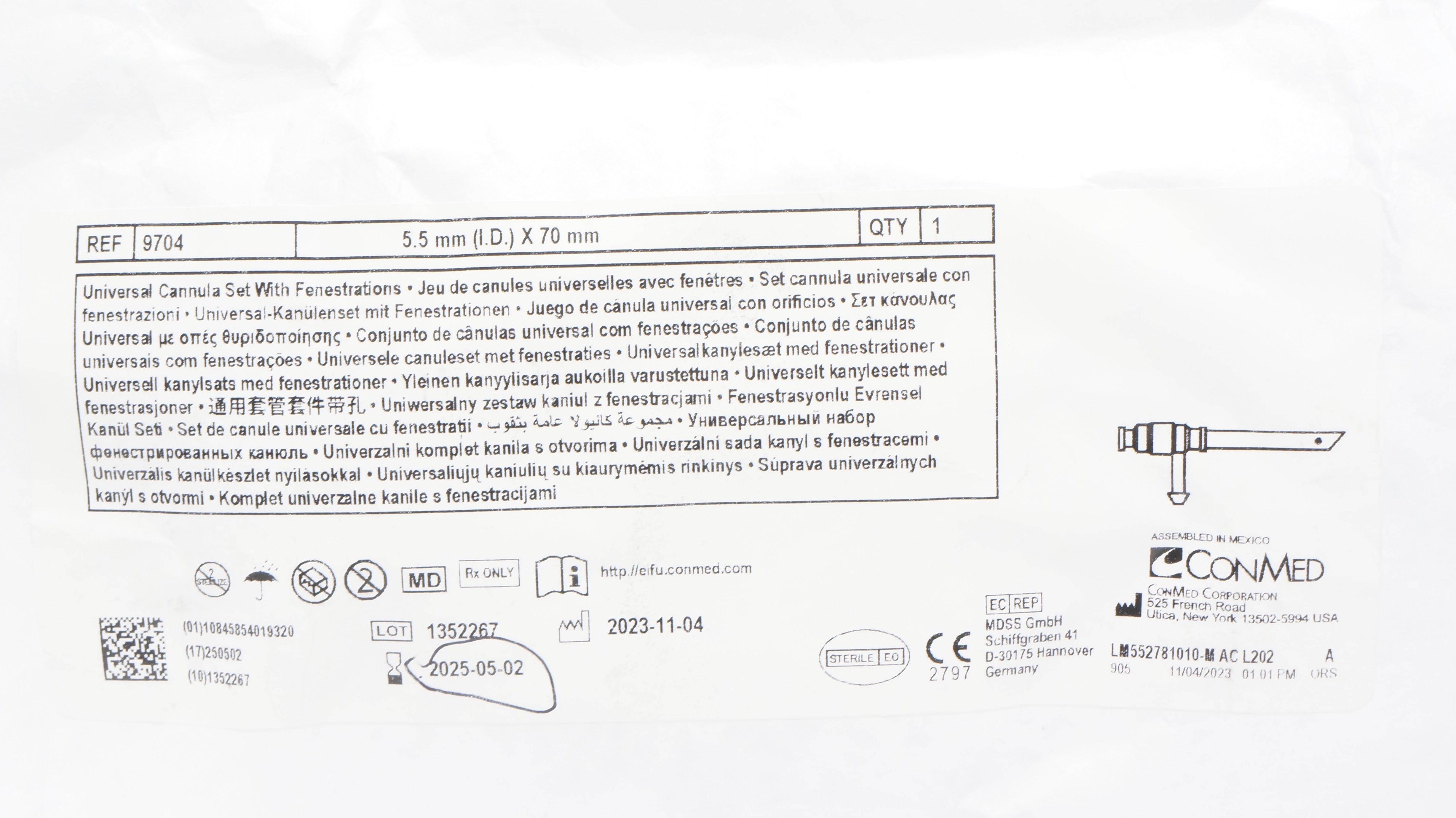 CONMED 9704 Gray Universal Cannula Set With Fenestration