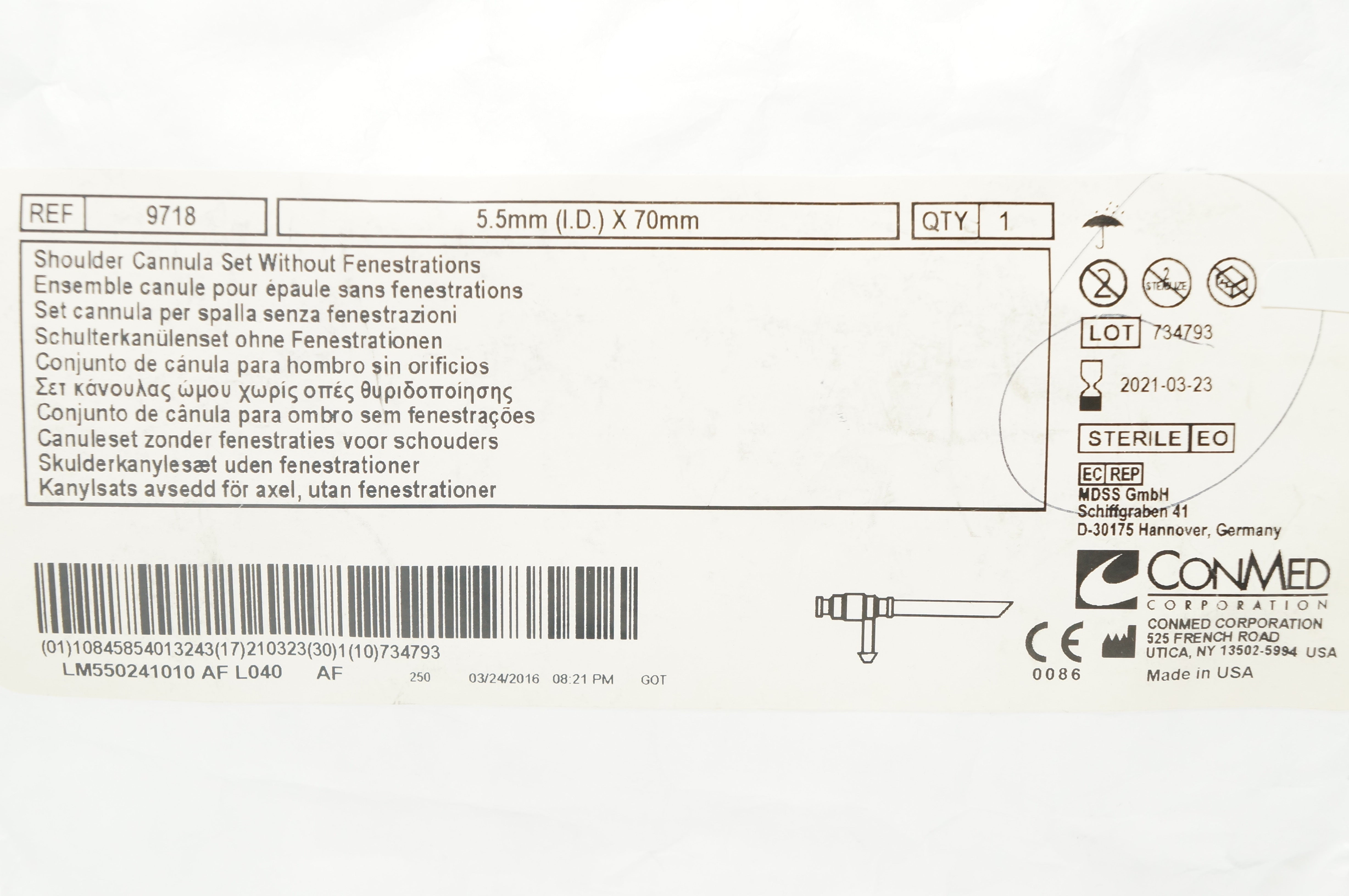 ConMed 9718 Shoulder Cannula Set Without Fenestrations 5.5mm x 70mm (x)