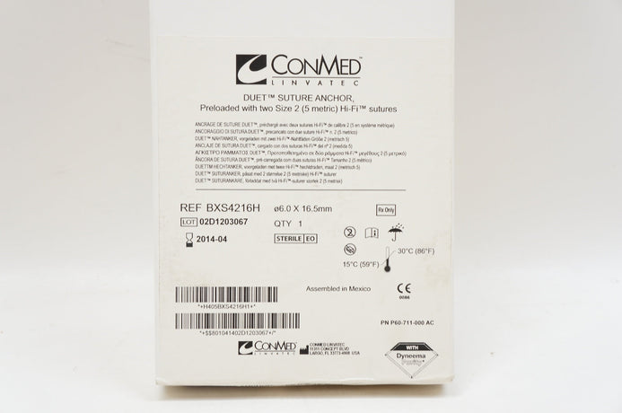 - ConMed BXS4216H DUET Stre Anchor, Preloaded with Two Size 2, Diam. 6.0x16.5mm(x)
