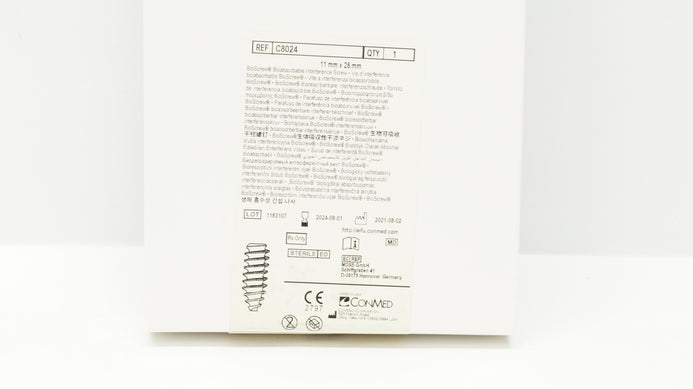 - ConMed C8024 BioScrew Bioabsorbable Interference Screw 11mm x 25mm (x)