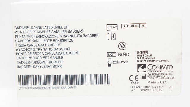 - ConMed C8593 Badger Cannulated Drill Bit 6.5 x 9inch - Box of 4