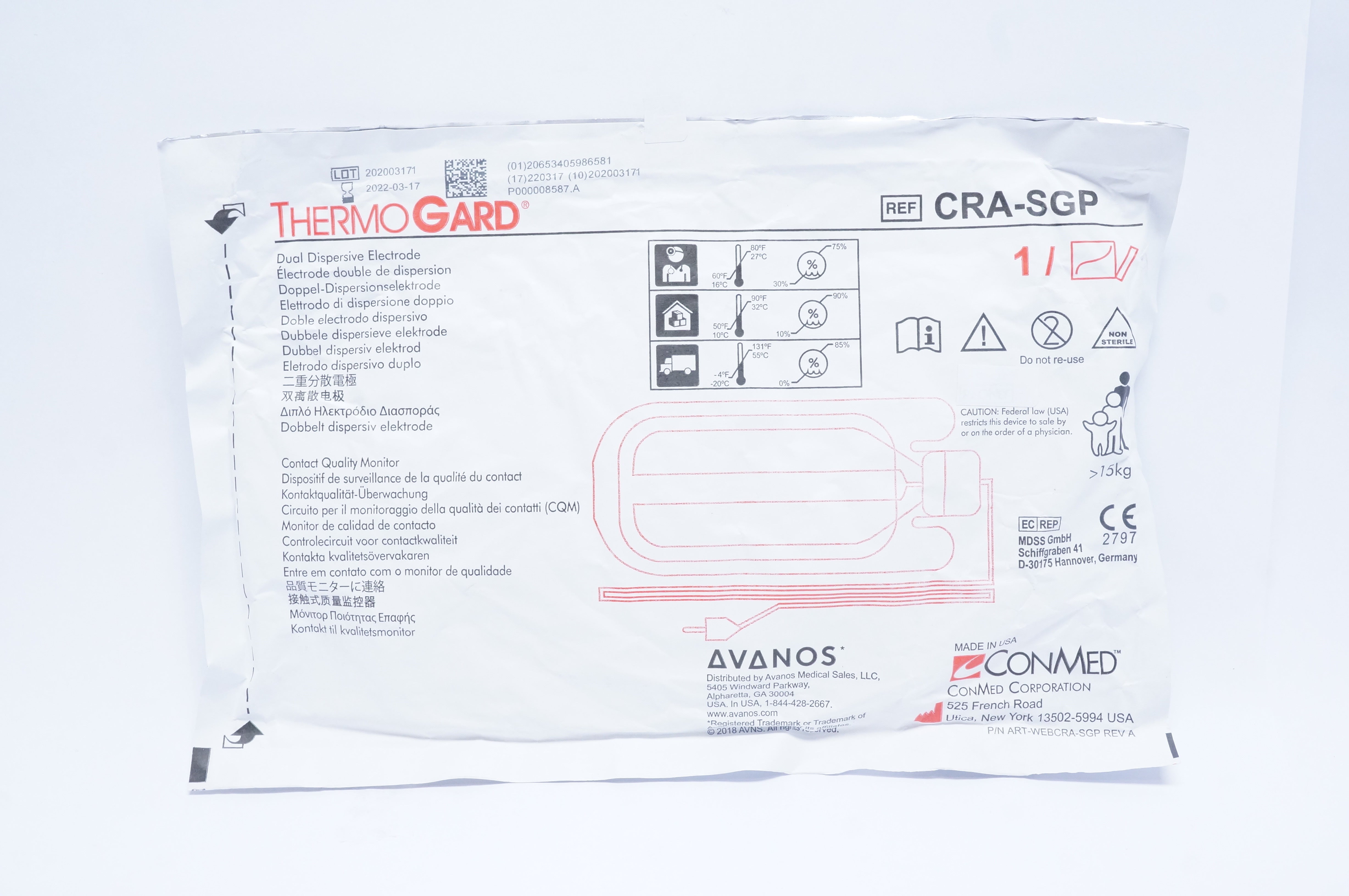 ConMed CRA-SGP ThermoGard Dual Dispresive Electrode