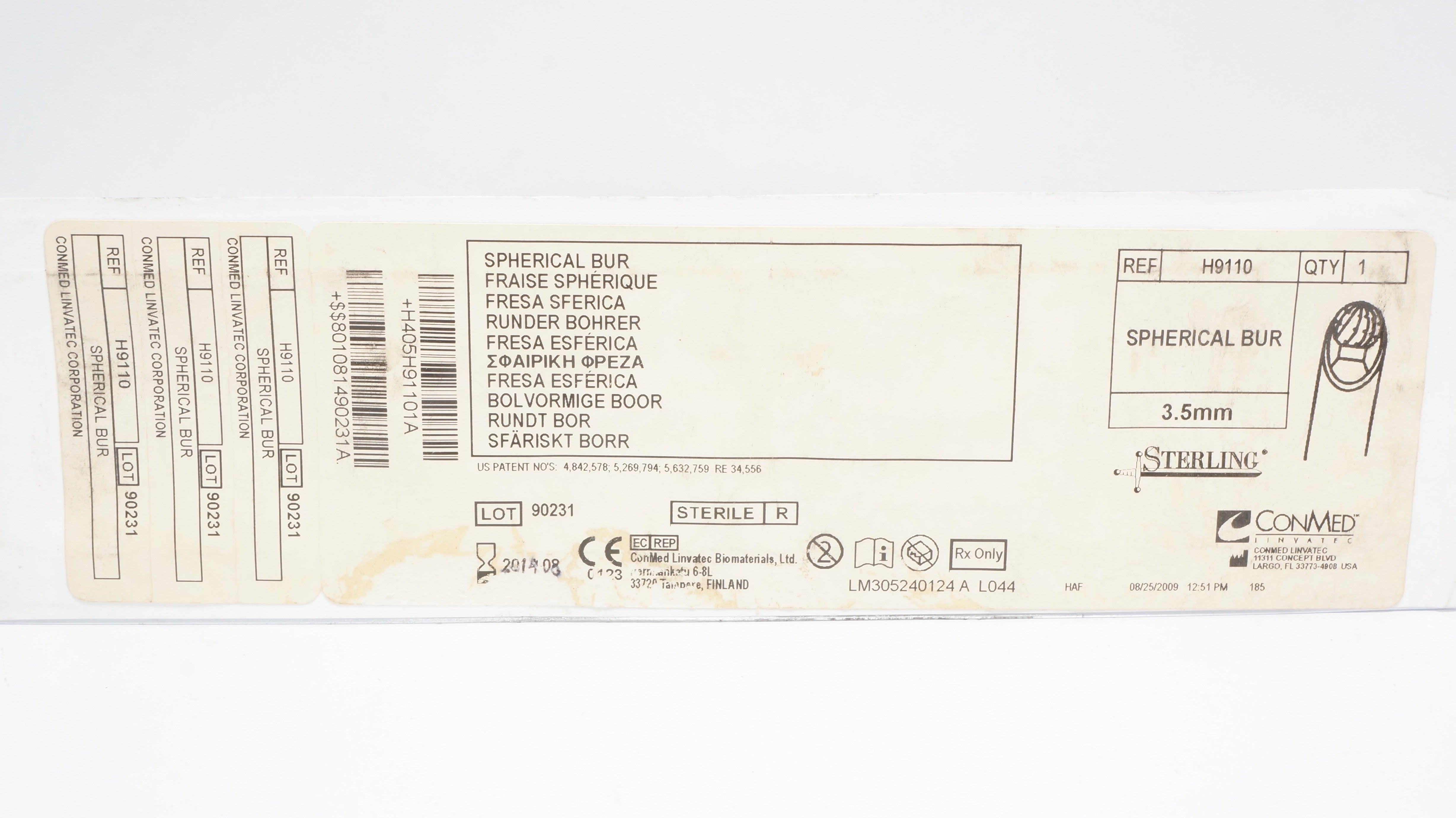 - ConMed H9110 Sterling, Spherical Bur 3.5mm (x)