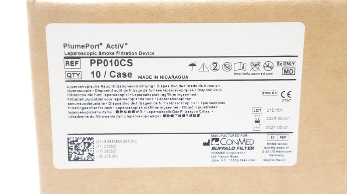 ConMed PP010CS PlumePort ActiV Laparoscopic Smoke Filtration Device(x)-Box of 10