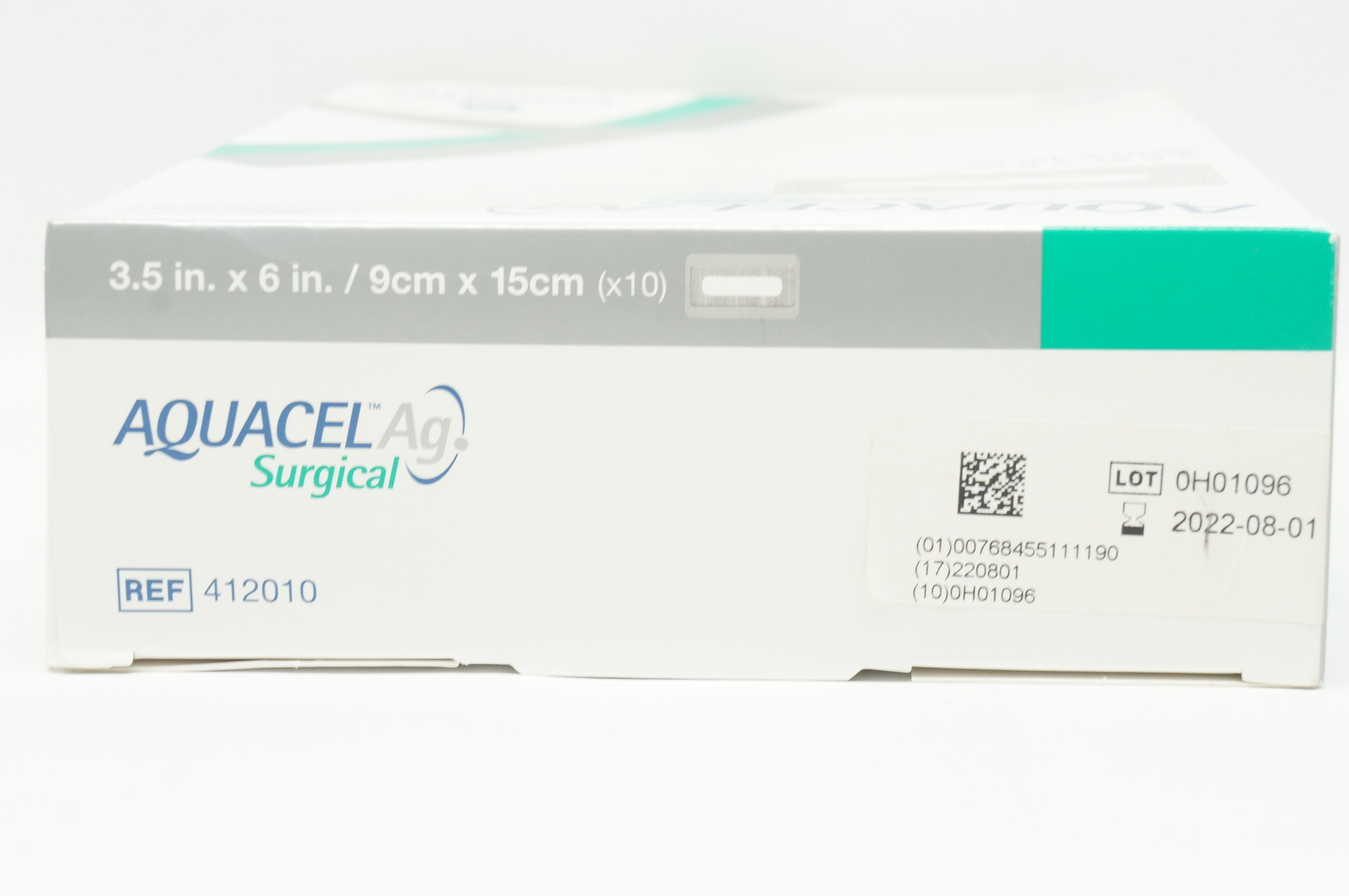 ConvaTec 412010 AquacelAg Surgical Cover Dressing Sterile 3.5in x 6in -Box of 10