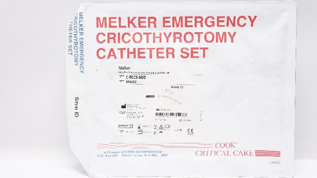 - Cook C-TCCS-600 Melker Emergency Cricothyrotomy Cath. Set 6mm ID