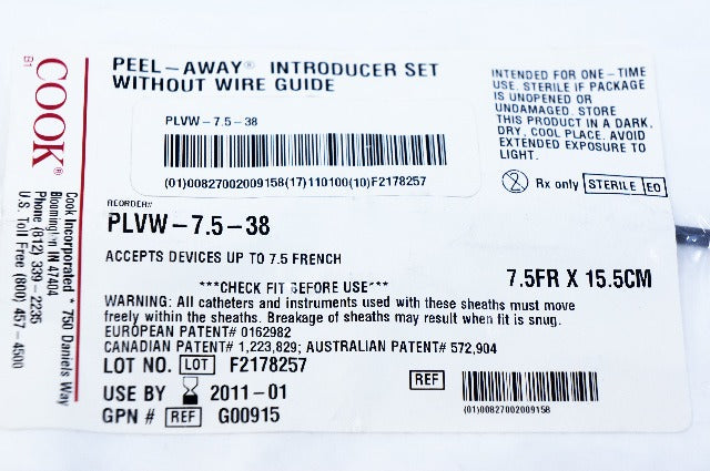- Cook G00915 Peel - Away Introducer Set Without Wire Guide 7.5Fr x 15.5cm (x)