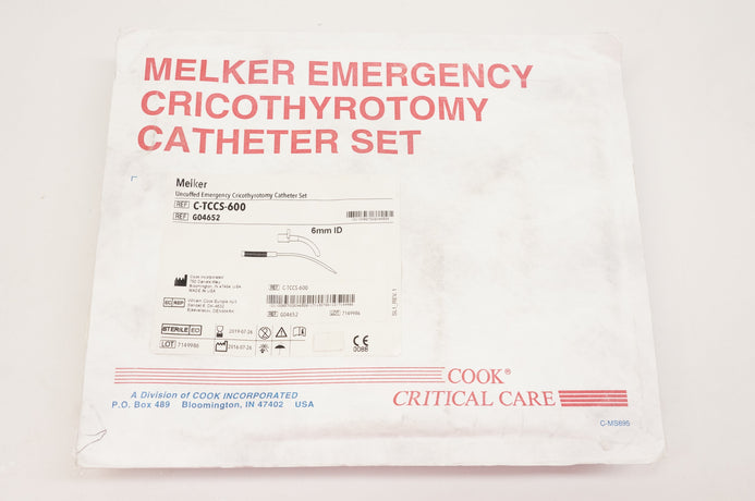 Cook G04652 Melker Uncuffed Emergency Cricothyrotomy Cath. Set 6mm ID (x)