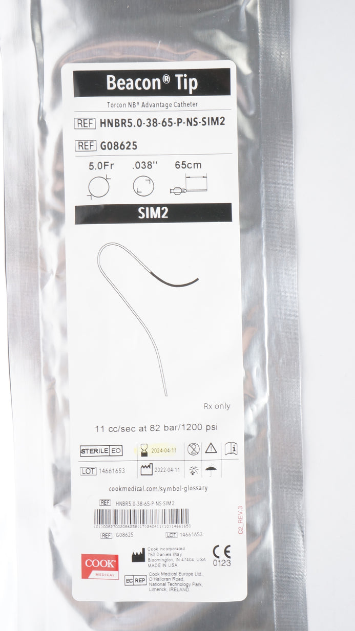 - Cook G08625 Beacon Tip Tarcon NB Advantage Cath. SIM2 5Fr x 0.038inch x 65cm (x)