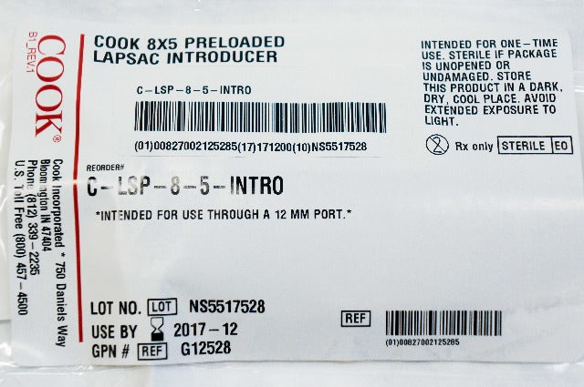 - Cook G12528 Preloaded Lapsac Introducer 5inch x 8inch (x)