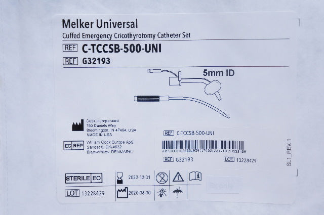 - Cook G32193 Melker Universal Cuffed Emergency Cricothyrotomy Catheter Set 5mm