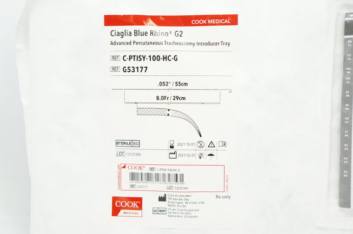 - Cook G53177 Ciaglia Percutaneous Tracheostomy Introducer Tray 0.052in./55cm (x)