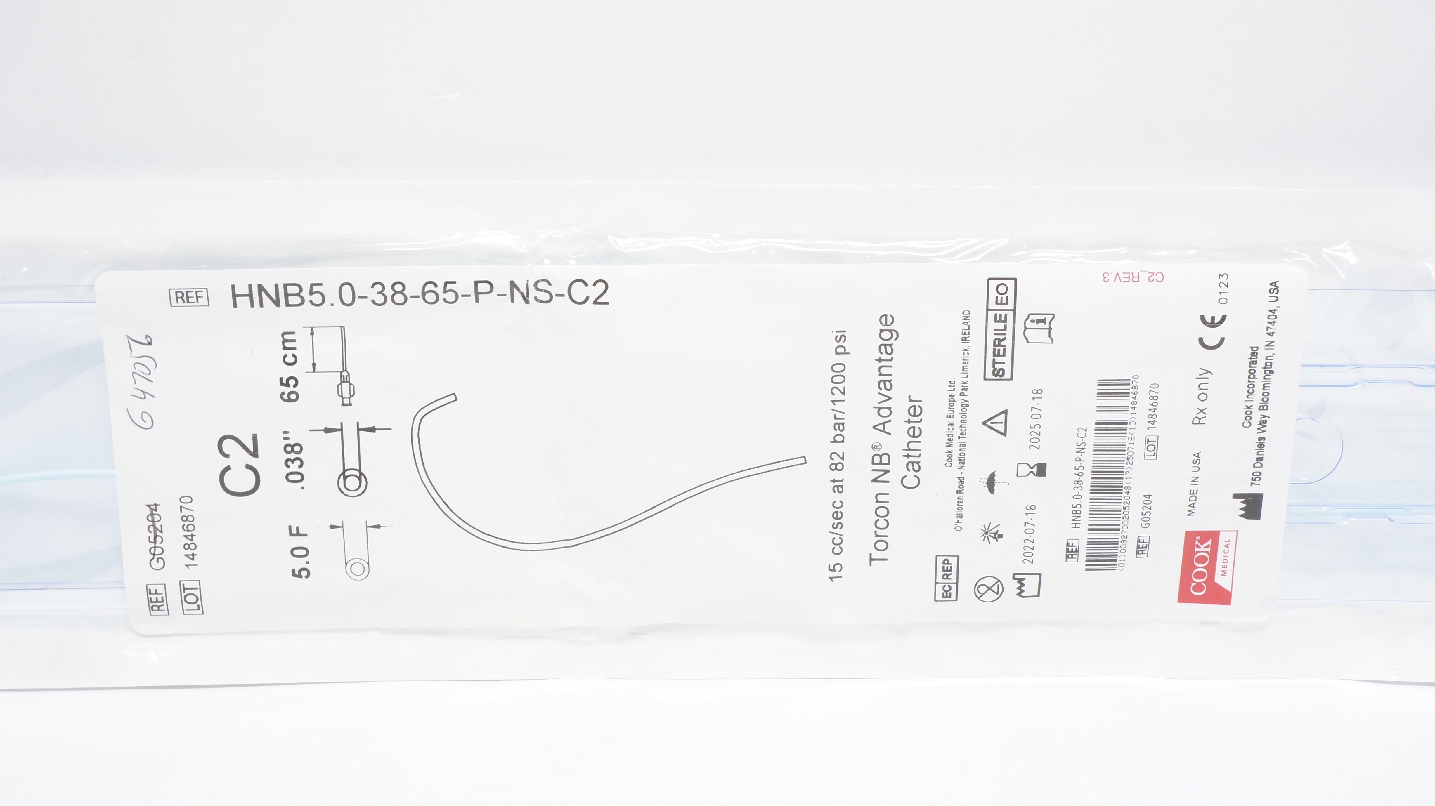 - Cook Medical G05204 Torcon NB Advantage Cath. C2 5.0F x 0.038inch x 65cm (x)