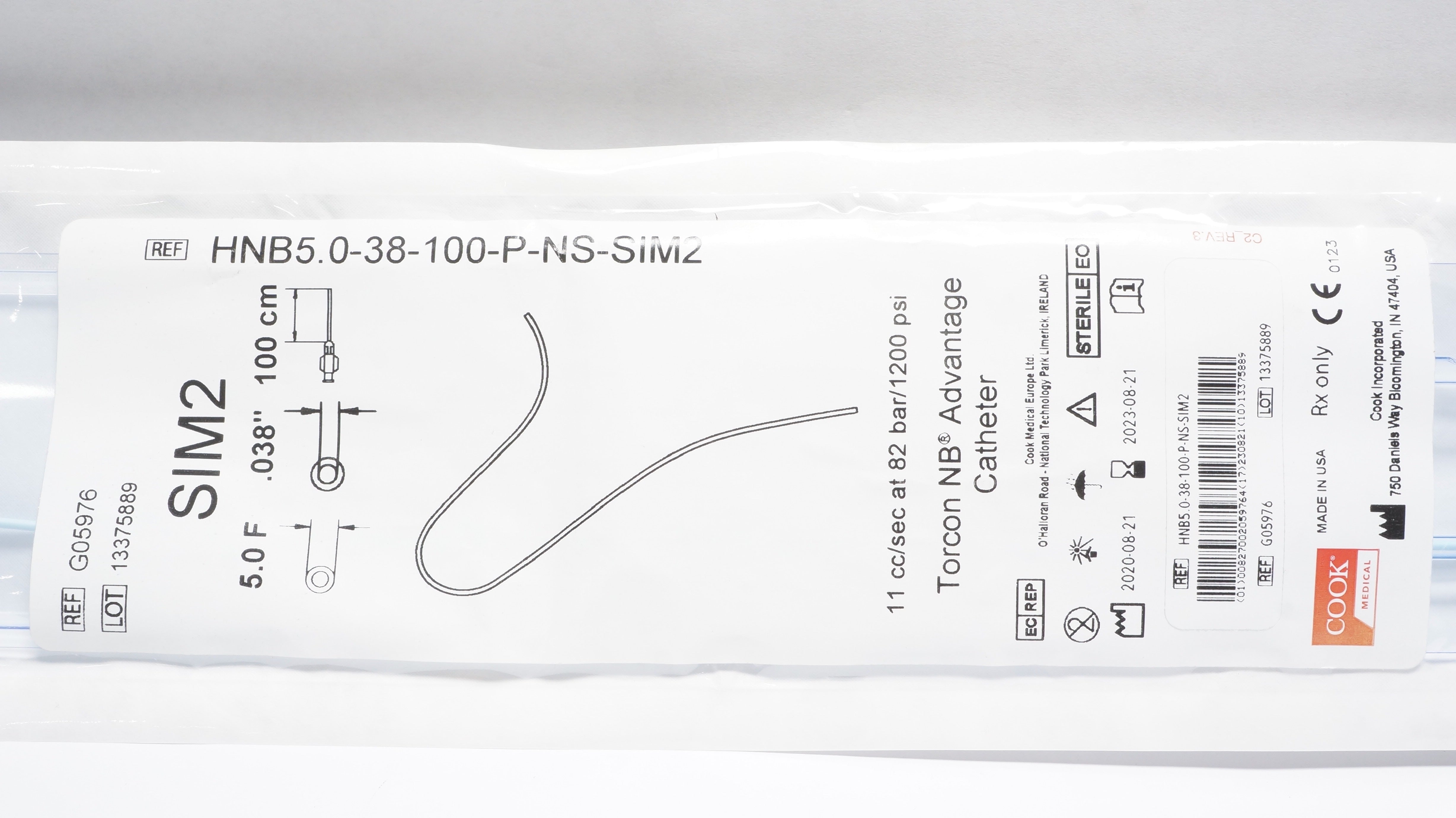 Cook Medical G05976 SIM2 Torcon NB Advantage Cath. 5F x .038inch x 100cm (x)