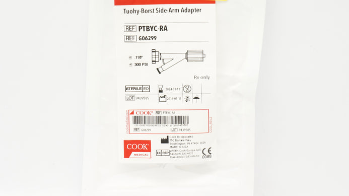 - Cook Medical G06299 Tuohy-Borst Side-Arm Adapter ≤ .118inch, ≤300PSI (x)