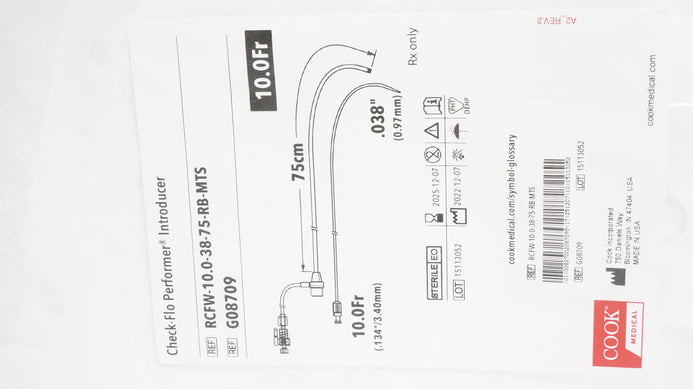 - Cook Medical G08709 Check-Flo Performer Introducer 10.0Fr x .038inch x 75cm (x)