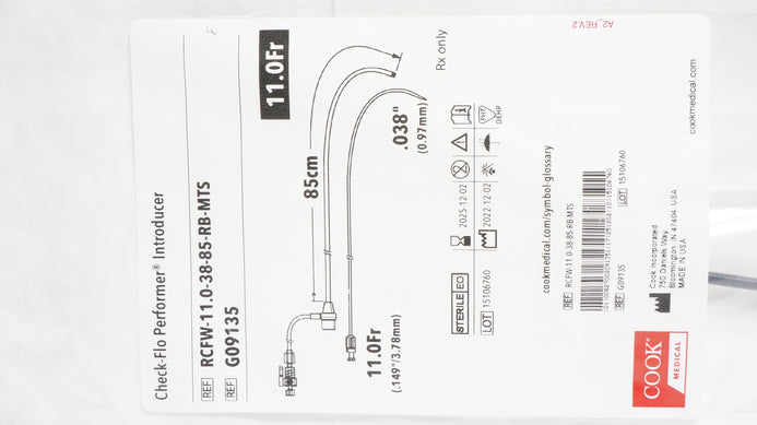 - Cook Medical G09135 Check-Flo Performer Introducer 11.0Fr x 85cm x .038In (x)