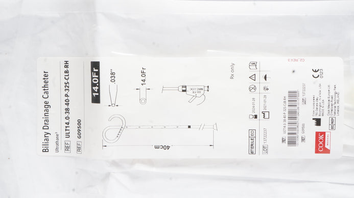 - Cook Medical G09500 Biliary Drainage Cath. Ultrathane 14.0Fr x .038in x 40cm (x)