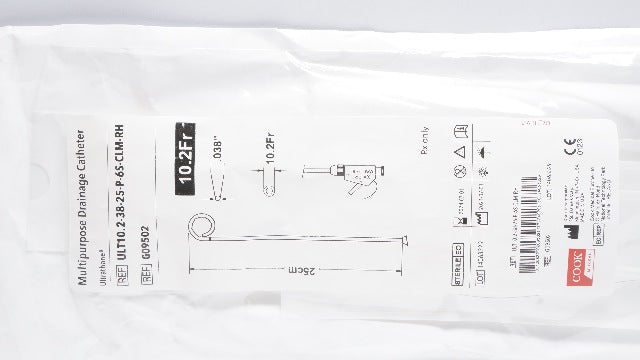 - Cook Medical G09502 Multipurpose Drainage Cath. 10.2Fr x 25cm x .038inch (x)